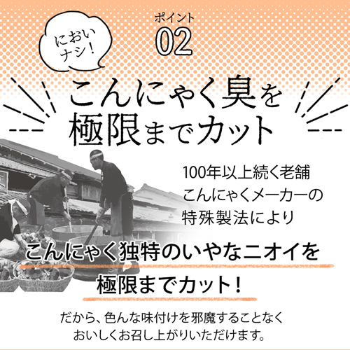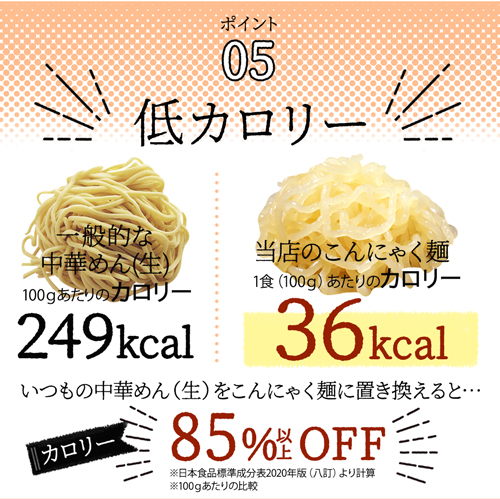 こんにゃく特有の臭みを極限までカットしたモチモチ食感の麺は、ソースとよく絡み満腹感も得られる美味しい麺に仕上がりました!