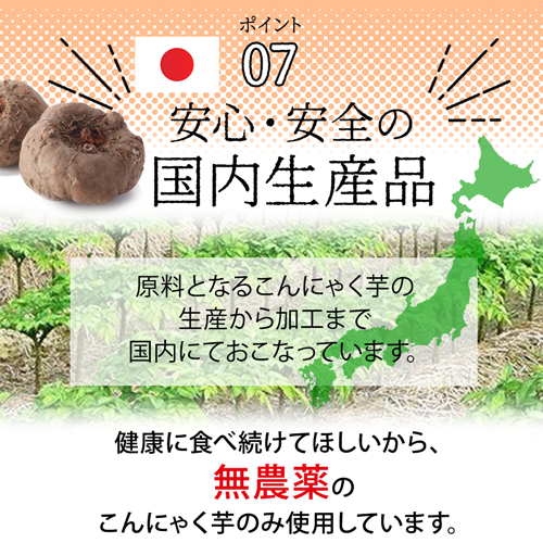 国産で無農薬の安心安全なこんにゃく芋を使用しています。