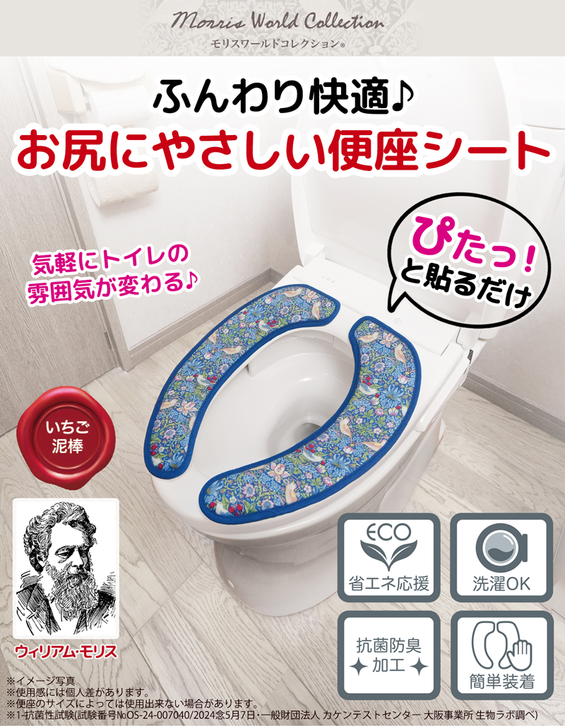 ウィリアム・モリスのいちご泥棒を全面にあしらったオシャレな便座シート。